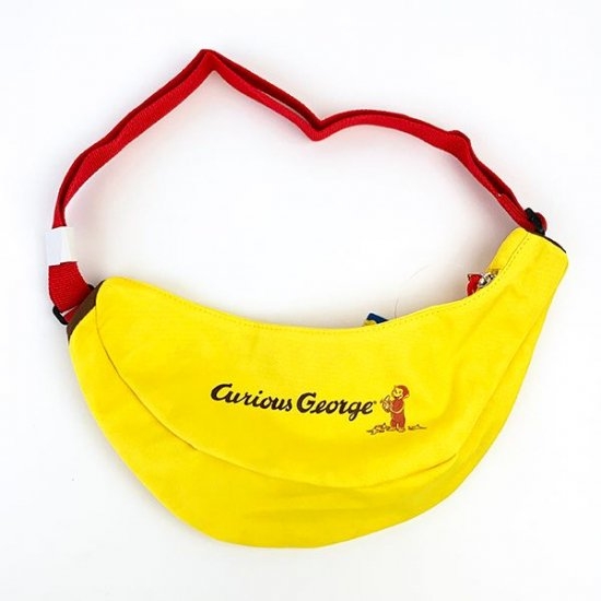 こちらのボディバッグもすごく素敵なんです!ジョージが好きなバナナをイメージして形を作ったバナナ型♪バナナを身に着けた様子がかわいいバッグです。バッグの内側の中生地にはジョージがいっぱい!バナナ感を出すために、さきほどのバッグとは違いワンポイントでシンプルに仕上げています。