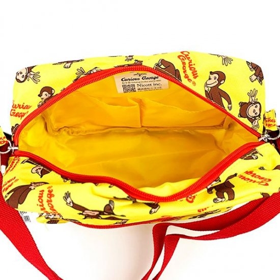 こちらはショルダーバッグです。ジョージの総柄がプリントされており、元気が出るテイスト♪お子様が身に着けている様子を見ればママさんもニッコリのかわいいバッグです。サイズは18cm×22cm×11cmで、おでかけや旅行にピッタリの大きさで持ち運びやすい◎車のライトを反射して光るリフレクター付きで、ママさんも安心です。
