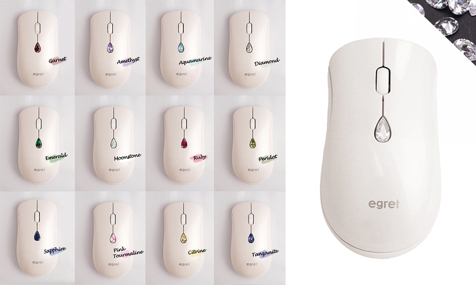 大粒4カラットのキュービックジルコニアが輝く 12色誕生石から選べるジュエリーのような ワイヤレスマウスが正式発売