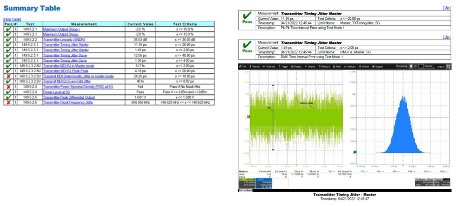また、テスト中の波形データが保存されるため、テスト不合格時にさらなる波形解析を行い不良原因の究明につながるデバッグ機能にも対応しています。
