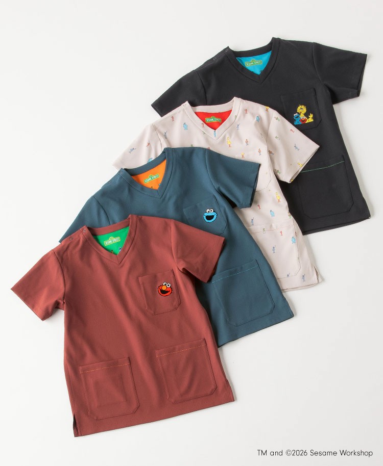 商品名:Scrub Canvas Club:SESAME STREETスクラブトップス・パンツ(男女兼用)