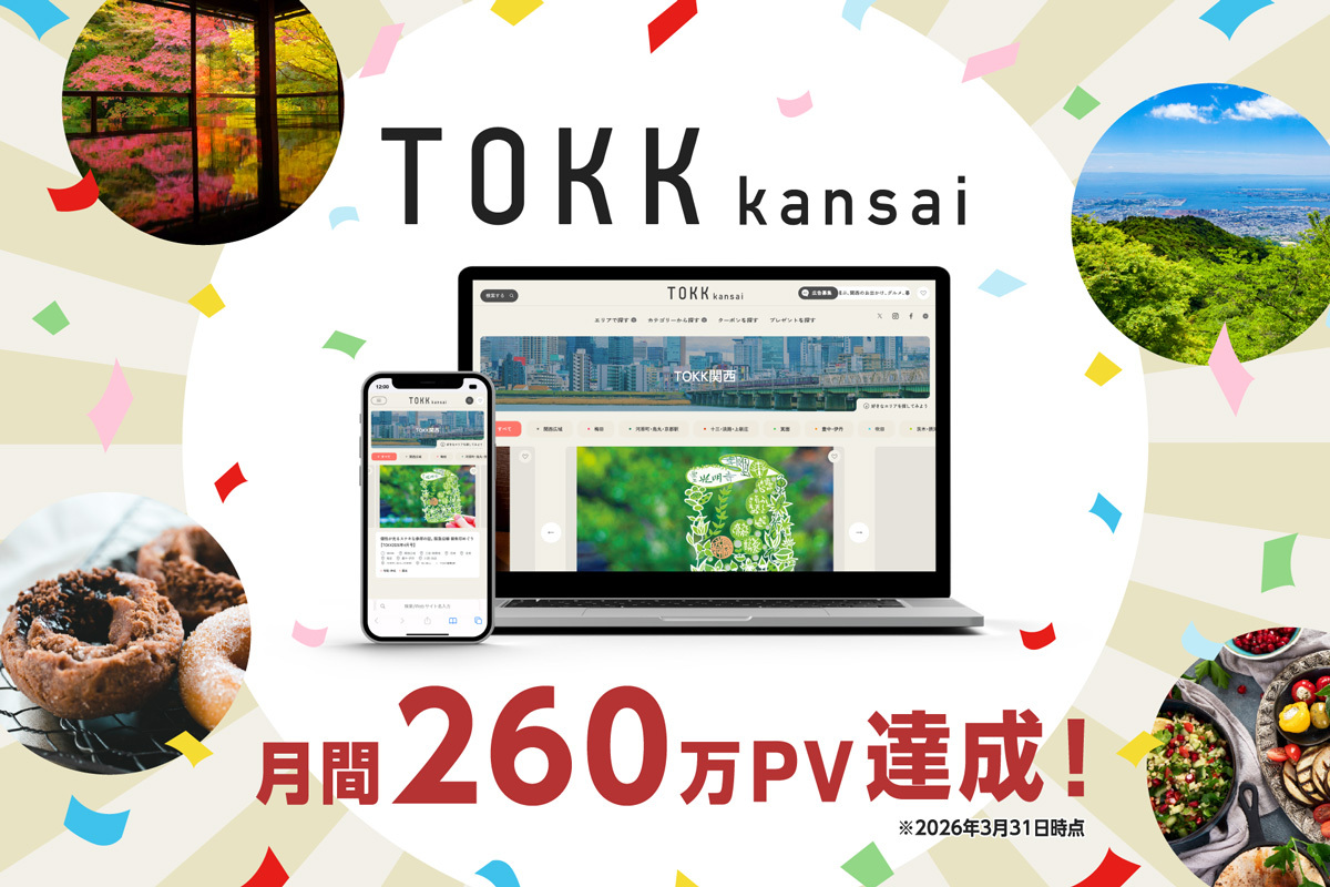 2026年3月のリニューアル以降、過去最高PVを更新 関西お出かけWebメディア『TOKK関西』が 月間260万PVを達成