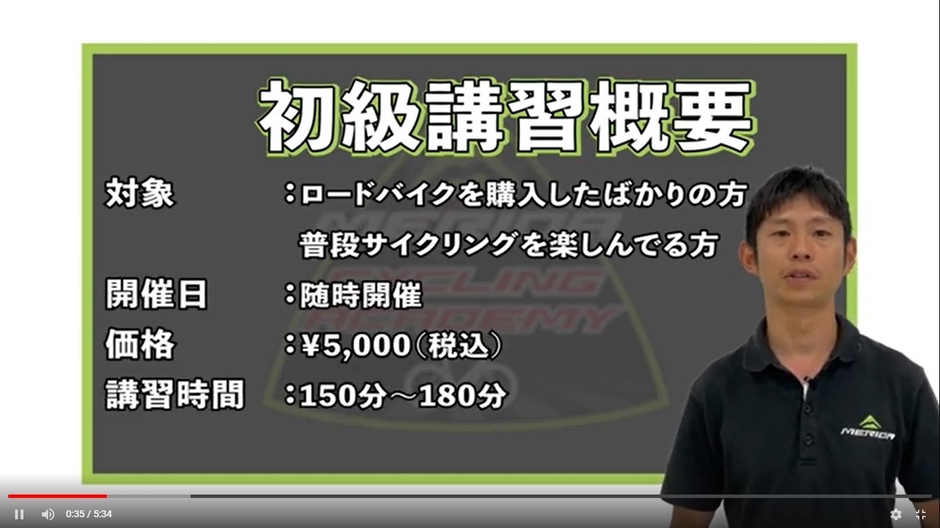 〇動画内では、ロードバイク初級者講習を実際に行いながら講習の流れを説明しています。