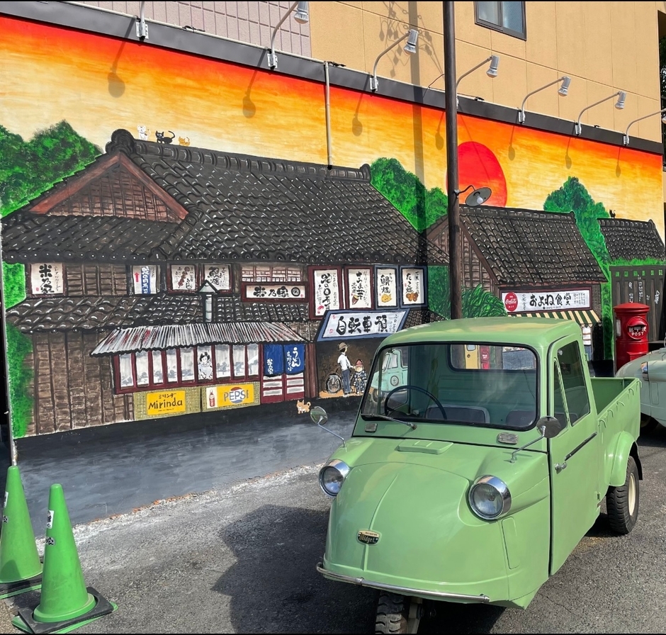 この企画のために、ワクワクする巨大な壁画を約40名で描きました。まるで昭和30年代の米乃家にタイムスリップしたような気分になります。