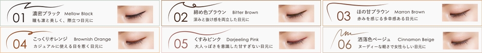 ・01 メロウブラック 瞳がくっきりと際立つ濃密なブラック。光沢感を抑えたセミマットな質感で上品な印象を演出。