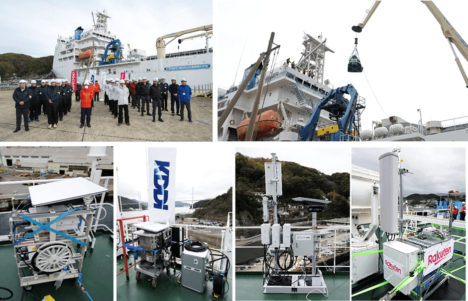 NTTグループが保有するケーブル敷設船「きずな」を活用して、3月4~6日はモバイル通信事業者が船上基地局の設置にかかる訓練を、3月7日は固定通信事業者が物資輸送の訓練を実施しました。大規模災害の発生を想定した一連の訓練により、船舶への基地局の設置や通信機材・物資の搬出入などの工程について滞りなく運用できることを確認しました。