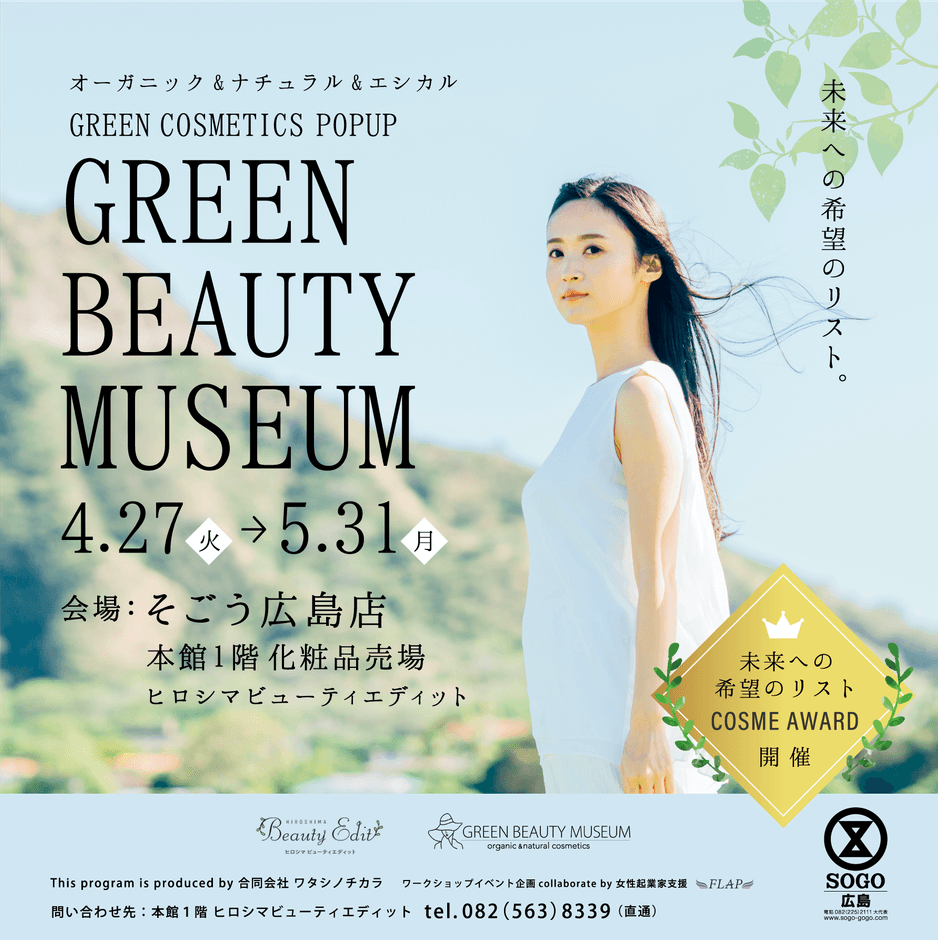 全国から広島へ! オーガニック&エシカルで人気の23ブランドが集結! 『GREEN BEAUTY MUSEUM』が4月27日(火)より そごう広島店で期間限定初開催!