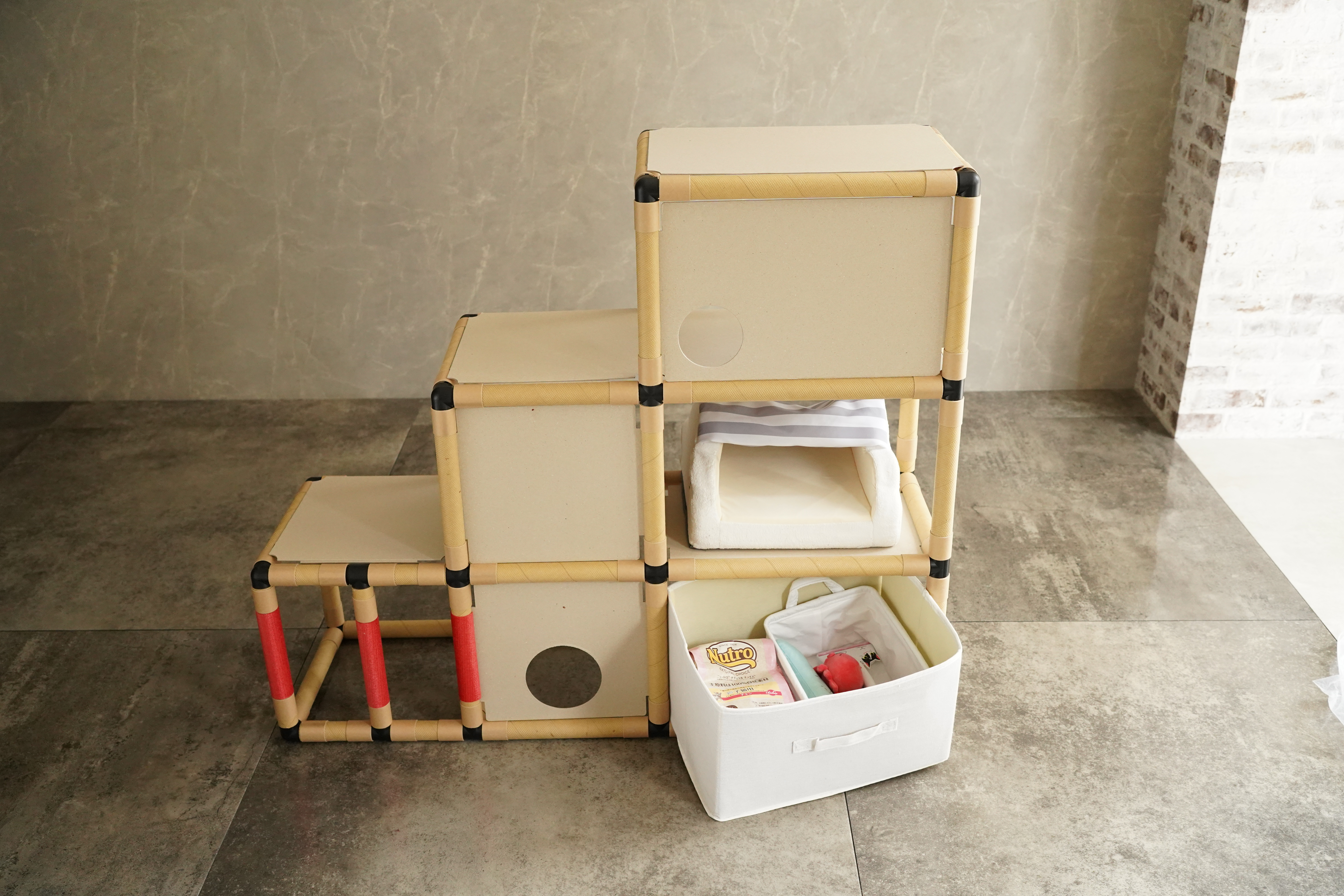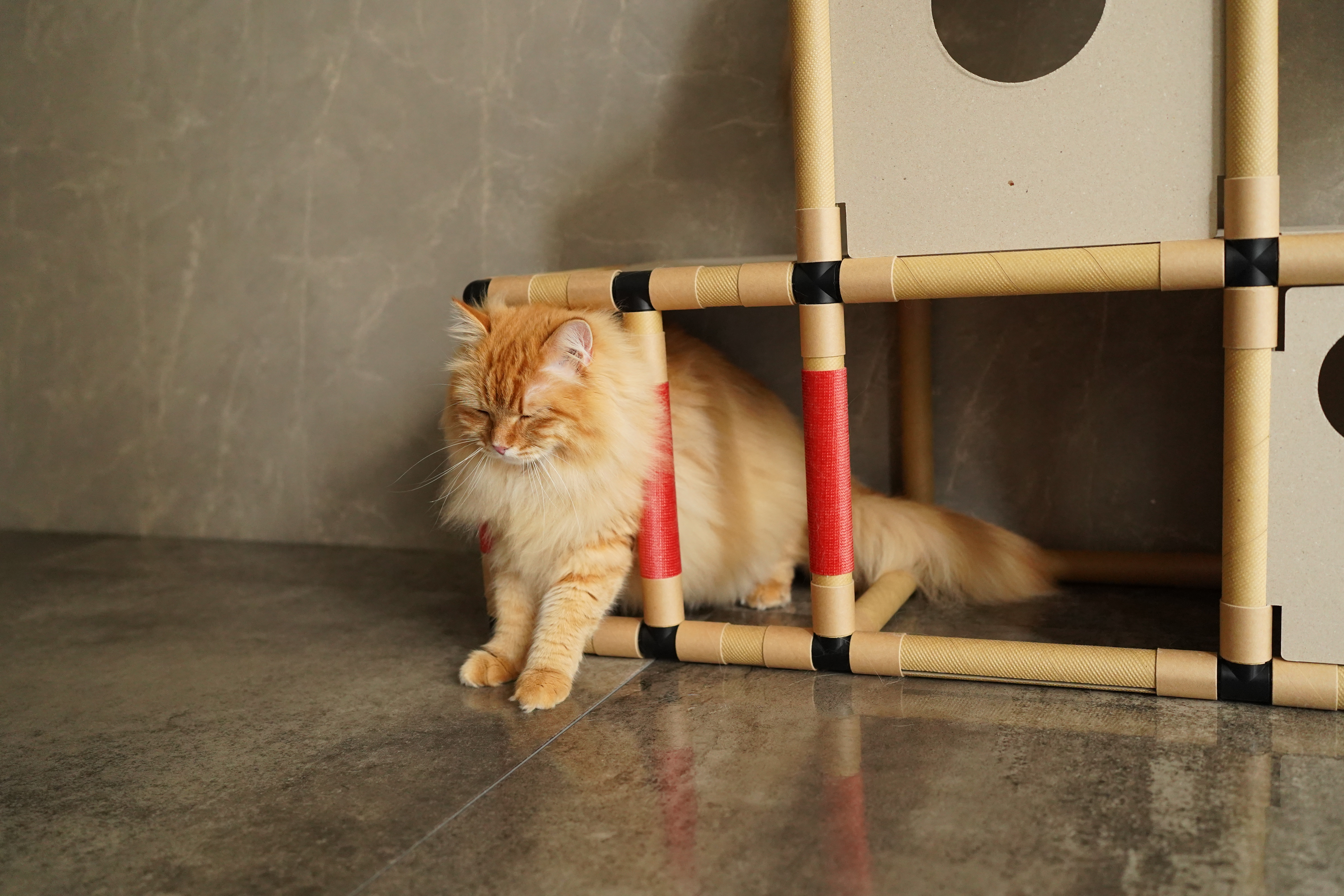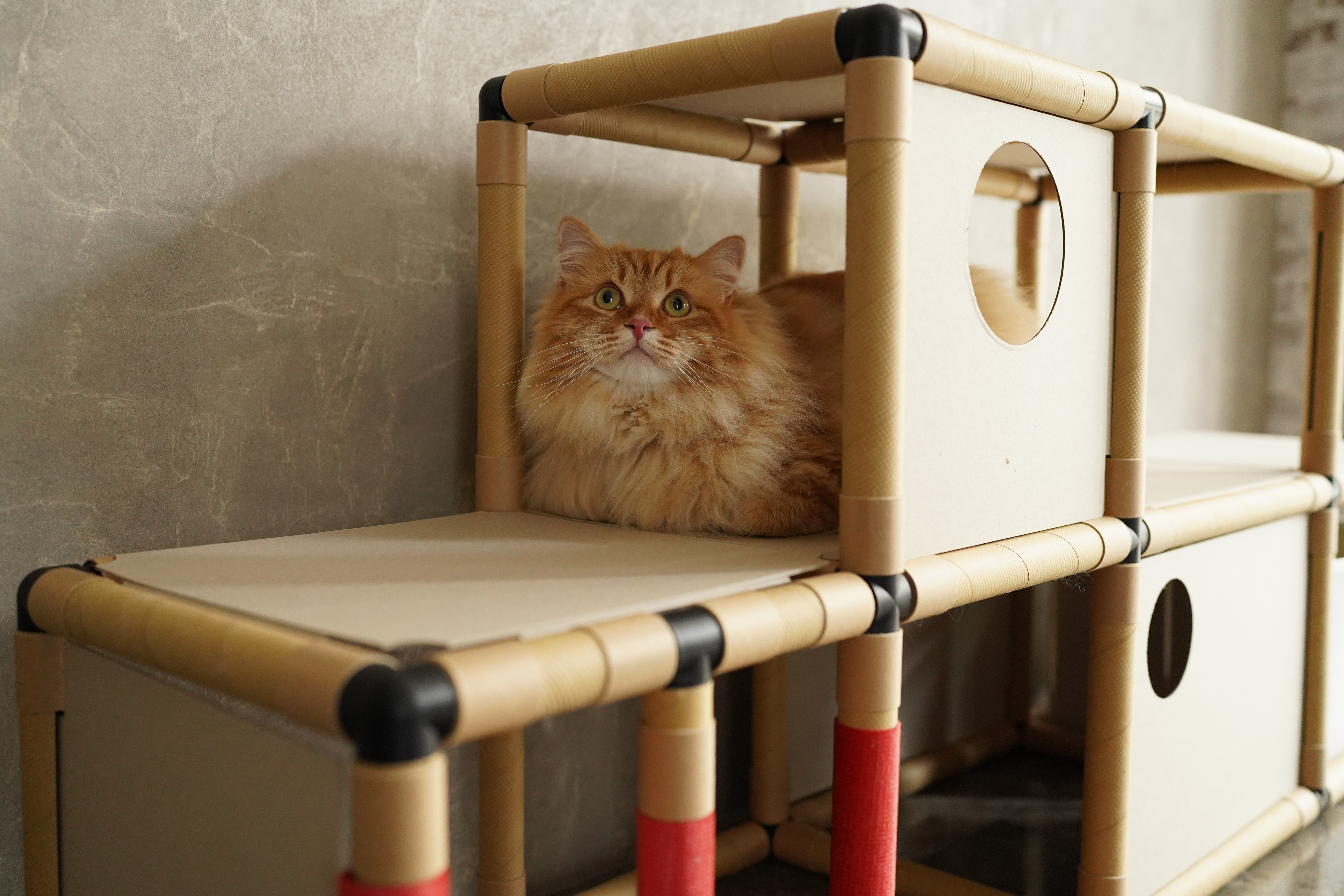 紙管で出来た環境配慮型キャットステップ。猫にも人にも優しい「にゃんグルジム」新登場!