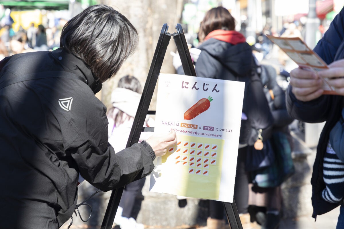 マルシェ会場に隠れている具材(パネル・シール)を見つけて、スープを作ろう!