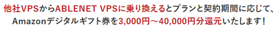 【最大40,000円分還元】ABLENET VPS〔大好評実施中〕新年他社乗り換えキャンペーン締め切りまで残り3週間!