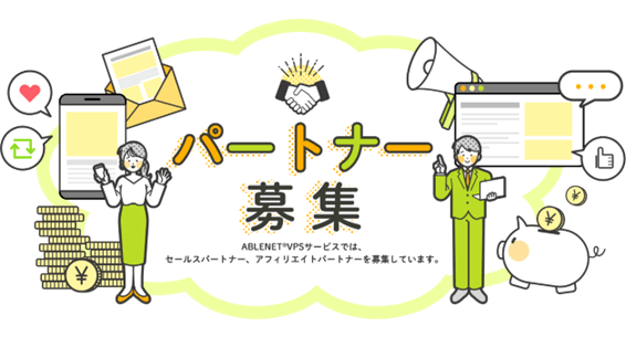 ABLENETでは、『ABLENET VPS』パートナープログラムへの参加企業・個人を募集しています。 気軽に簡単にはじめられ、紹介成果報酬が得られる!