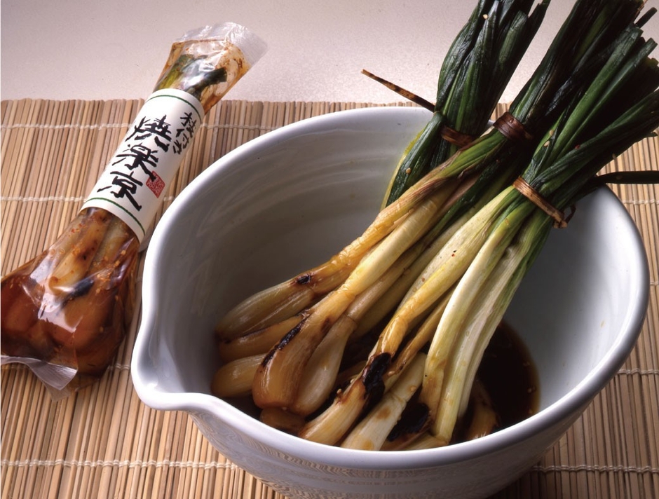 早採りのらっきょうを、香ばしく炙ってから特製の醤油だれに「ジュッ」と漬け込んた季節のお漬物です。