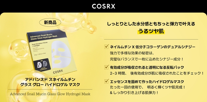 COSRXより新商品「アドバンスド スネイルムチン グラス グロー ハイドロゲル マスク」登場!発売記念のセールも開催
