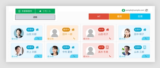 テレワークを導入してから、メンバー同士のコミュニケーション機会が少なくなり作業効率や生産性が悪くなっていませんか?『ChatdeRemote』の在席ステータス機能は、自分以外のメンバーが「在席・離席しているのか、ミーティング中なのか」がリアルタイムで確認できます。