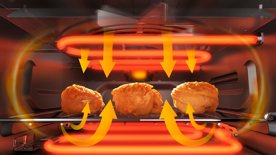 *熱風が庫内を対流し、食材にムラなく熱を通すことで美味しくキレイに焼き上げ