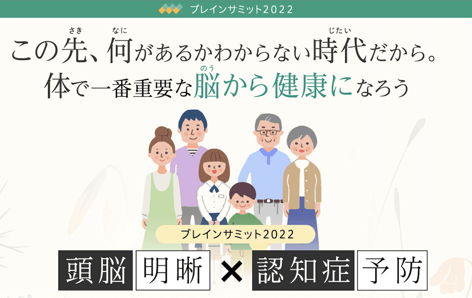今回は、脳の健康の価値観を変え認知症を予防し、記憶力と集中力など脳の機能を高め才能を開花させることで、あなたとあなたの大切な人の脳が健康に若返る方法をお伝えする「ブレインサミット」を2022年10月16日(日)にオンラインにて開催します。
