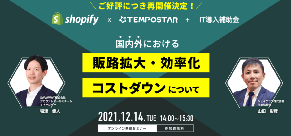 【オンライン共催セミナー12/14(火)】Shopify × TEMPOSTAR + IT導入補助金 を開催します。