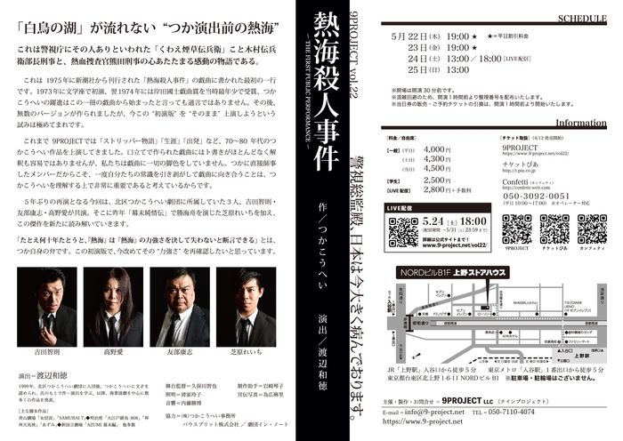 9PROJECT主催、『熱海殺人事件 〜1973初演 ver.』が2025年5月22日 (木) 〜 2025年5月25日 (日)に上野ストアハウス(東京都 台東区 北上野 1-6-11)にて上演されます。