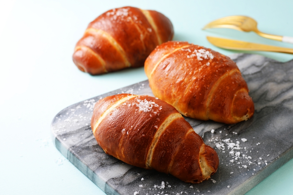 北海道産小麦『みのりのちから』と『はるきらり』使用、プレッツェル風の塩パンのため他の塩パンにはないもちもち感が特徴です。