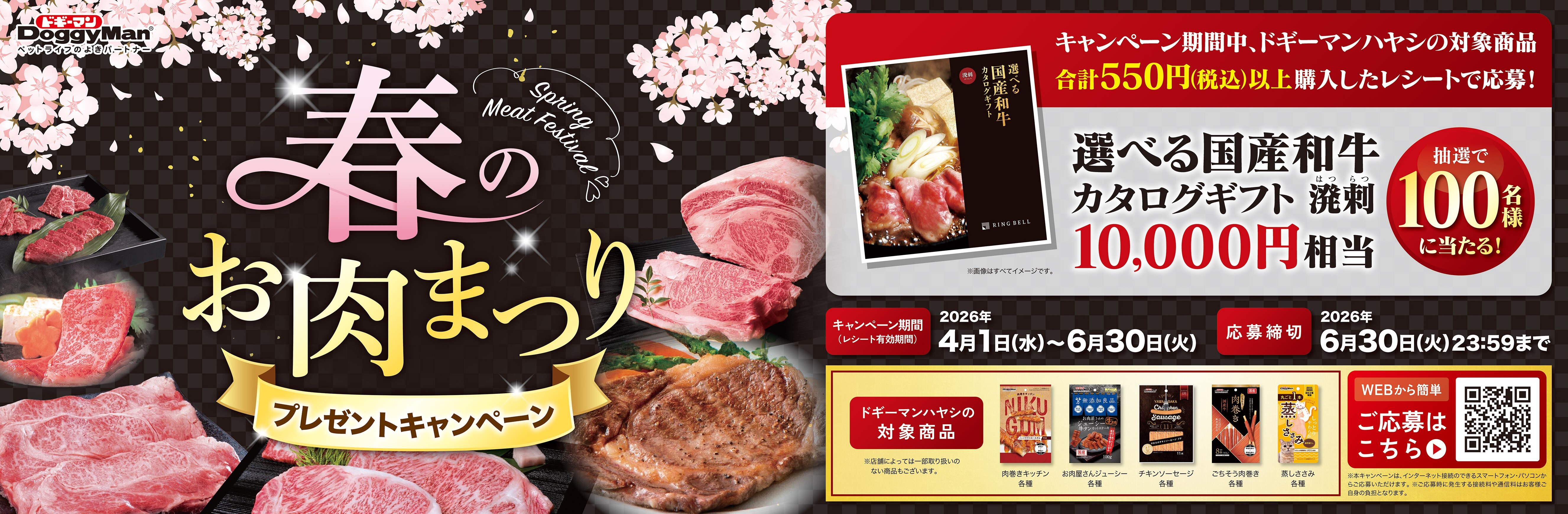 ペットフードはドギーマン♪のテレビCMでお馴染みのペットメーカー、ドギーマンハヤシ株式会社(所在地:大阪府大阪市東成区、代表:林 雄一)は、4月1日(水)から「春のお肉まつりプレゼントキャンペーン」を開催いたします。