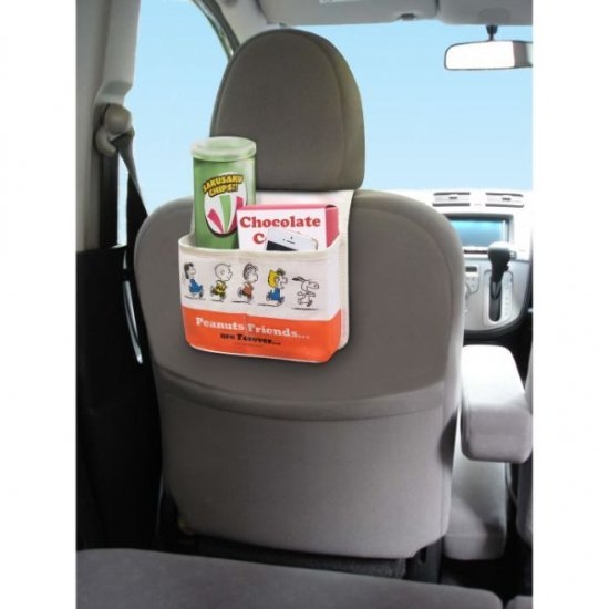 同じくスヌーピー&フレンズデザインのシートバックポケットも揃えれば、可愛い&便利です☆こちらは後部座席を快適にするアイテム。ヘッドレストポールに取り付ける収納ポケットなんです!