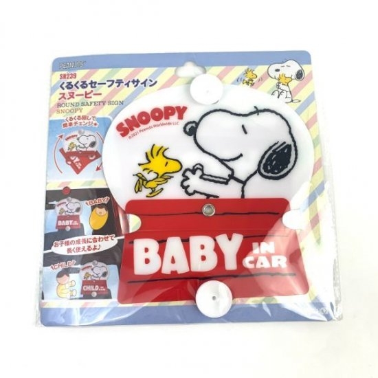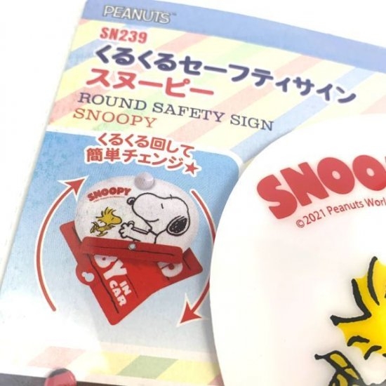 おつぎもまた仕様が異なるセーフティサインです。今度はくるくる回らないものの、スヌーピーが手を振っているようにユラユラ動きます♪目を引くから後続車にしっかりとセーフティサインをお知らせしてくれますよ~!