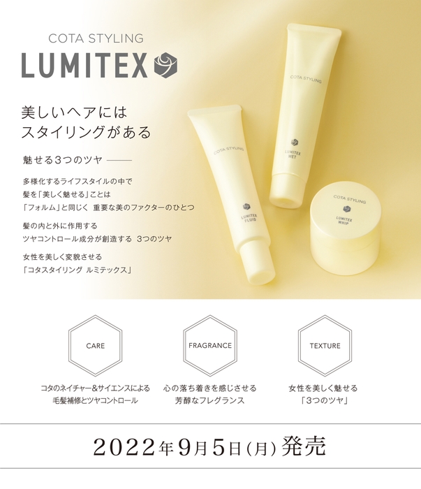魅せる3つのツヤで、女性を美しく変貌させるスタイリング剤の 新製品「コタスタイリング ルミテックス」が2022年9月5日発売!