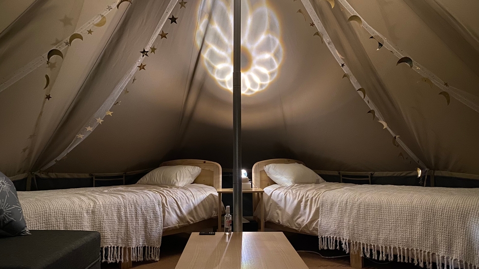 ・グランピングサイトは、ホテルエリアから徒歩3分です。