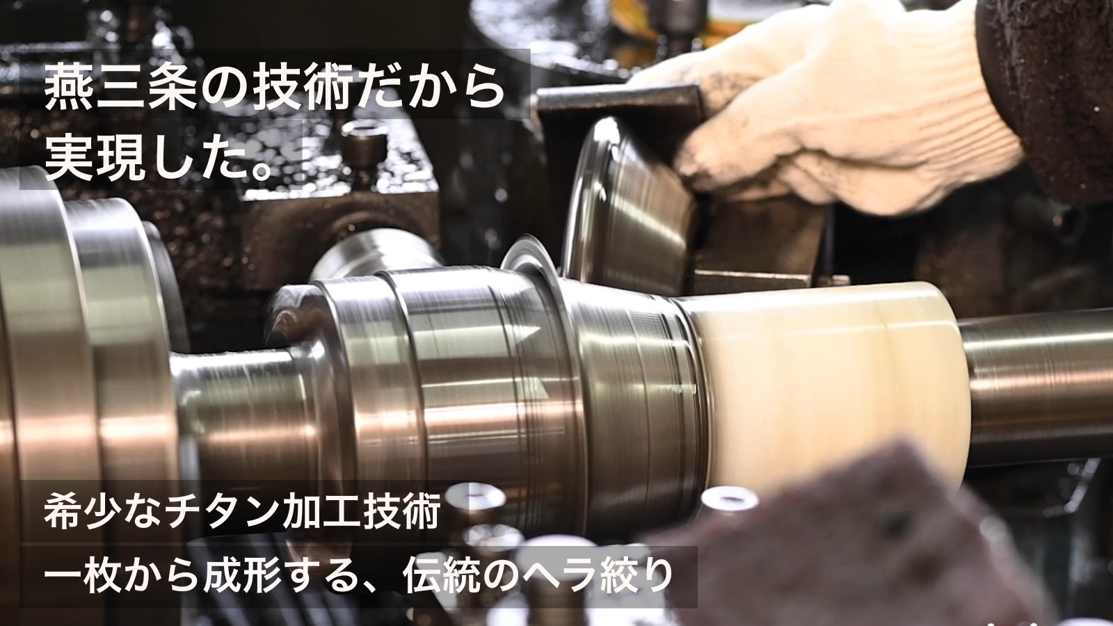 製造には、燕三条の伝統技術「ヘラ絞り」を活用。