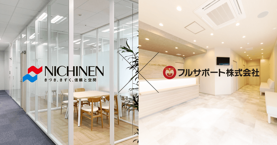 両社の共通点は、様々な業態・業種の内装工事を設計から施工までワンストップで行えることにあります。しかし、これまでに得意としてきたカテゴリに違いがあり、株式会社ニチネンはオフィス内装や工場営繕工事が主体、フルサポート株式会社はクリニックの設計・施工、店舗の内装工事やリフォームが事業の中心でした。今後、時代の変化に合わせた機能性やデザイン性が求められる「内装業界」において、互いの強みとリソースを相互補完する組織をつくり、施工後の管理運用面の強化も図ります。