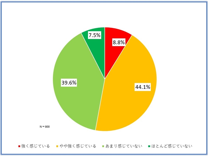 「自分自身が熱中症になる危険性をどの程度感じているか」との質問については、「強く感じている」が8.8%、「ある程度感じていない」が44.1%で5割強が危険性を感じていると回答した【グラフ5】。ただし、年代別では特に顕著な差が見られなかった【グラフ6】。