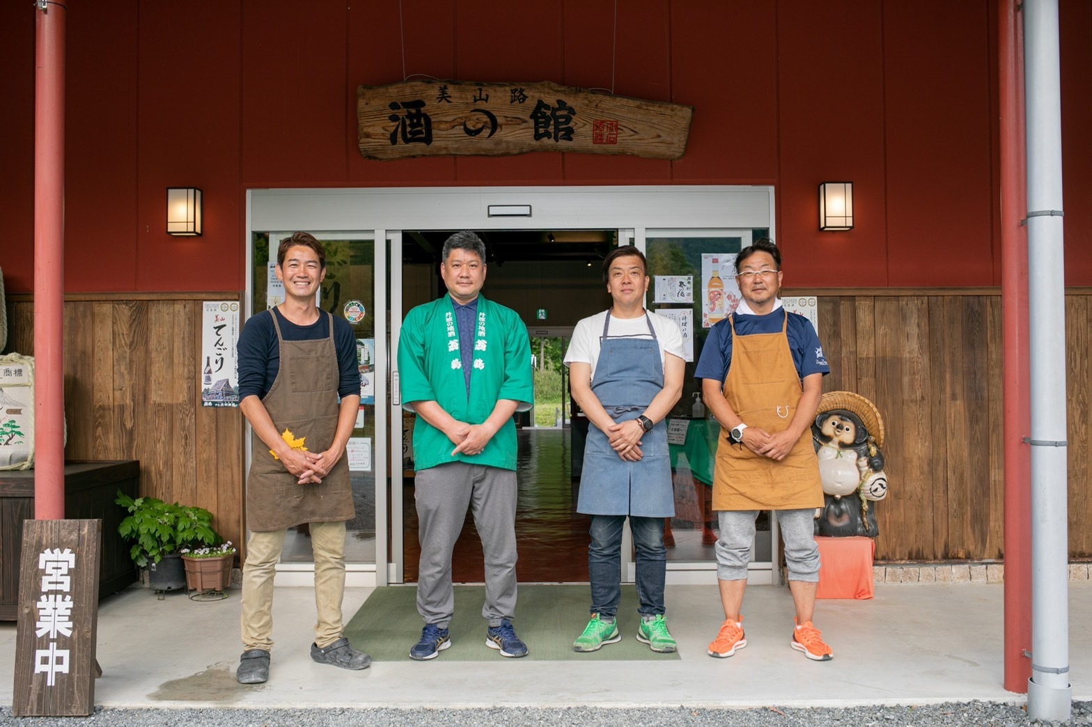 敷地内には300年以上つづく大石酒造がよりよい名水を求めて移設した酒蔵「美山蔵」があり、機械に頼らず、杜氏の技を生かし伝統を守り作られた日本酒の飲み比べや酒作りの無料見学も可能です。