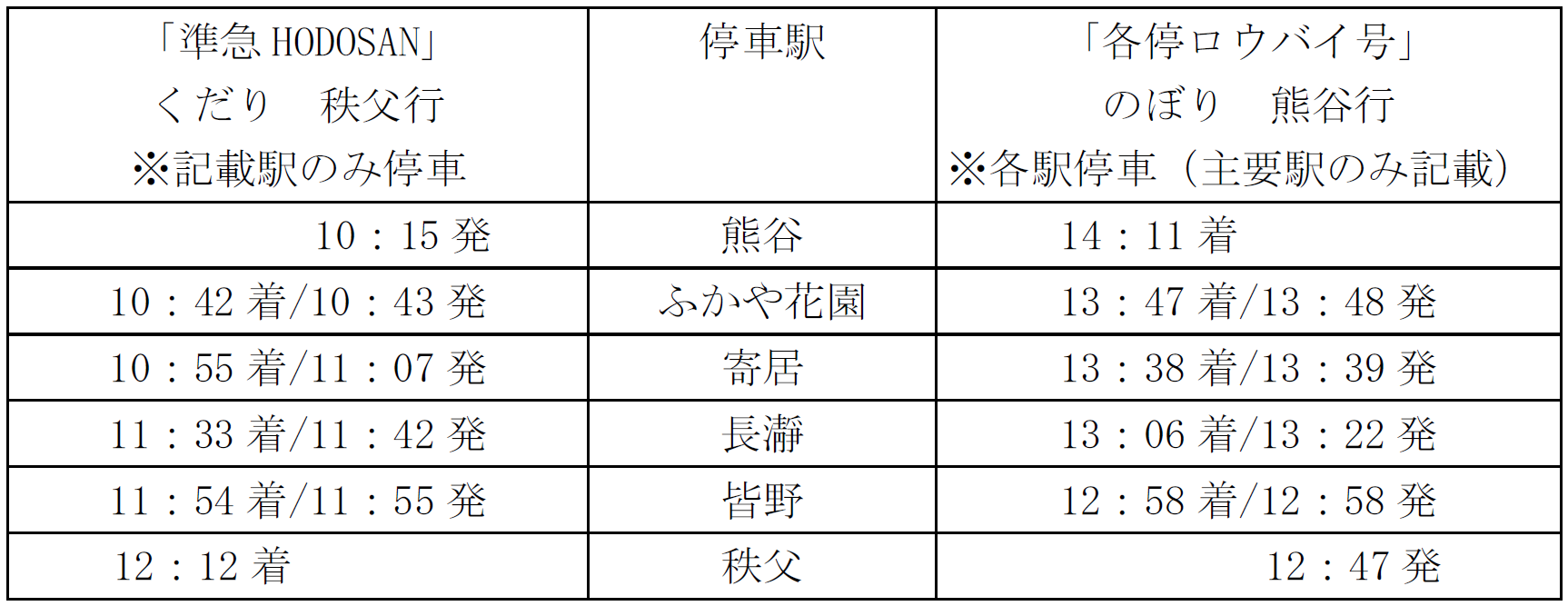 (2) 運行区間 秩父鉄道 くだり熊谷~秩父駅間「準急HODOSAN」、