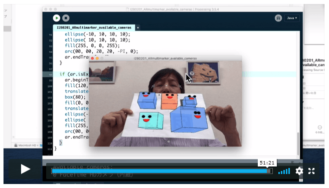 内容はITの基礎、マルチメディア基礎、振動と波動、ジェネラティブアート、ボールの移動と壁での反射、AR(拡張現実)、確率と統計の基礎、人工生命の初歩と多岐にわたります。