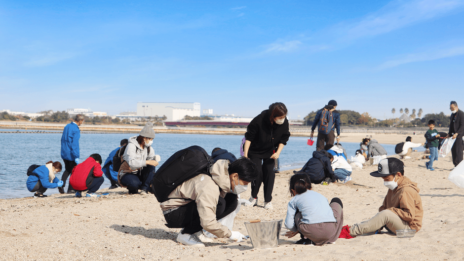 大きなごみを拾うスタンダードビーチクリーンと、細かなプラスチックごみを拾うプラ干狩り体験を行いました。