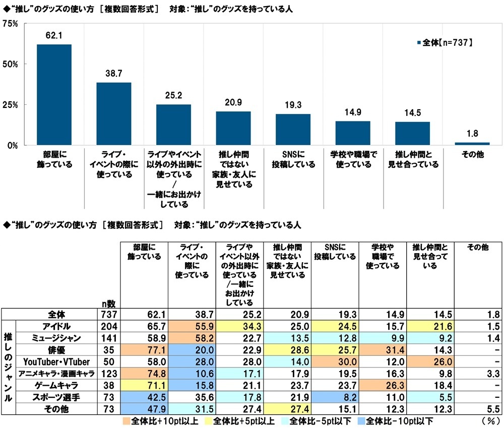 “推し”のグッズの使い方 1位「部屋に飾っている」2位「ライブ・イベントの際に使っている」