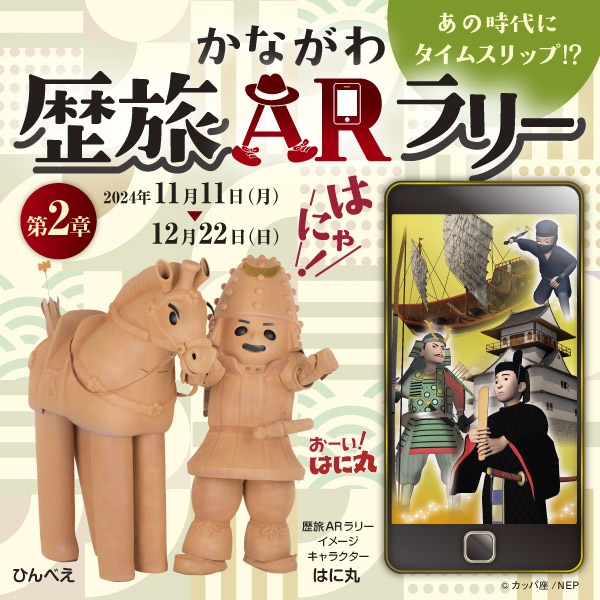 神奈川県では、周遊観光を促進する取組として、県内にある様々な時代の遺跡や史跡を巡るとともに、チェックポイントにおいてAR技術により当時の様子を再現した3Dモデル(ARコンテンツ)を出現させるスタンプラリーを開催中です。