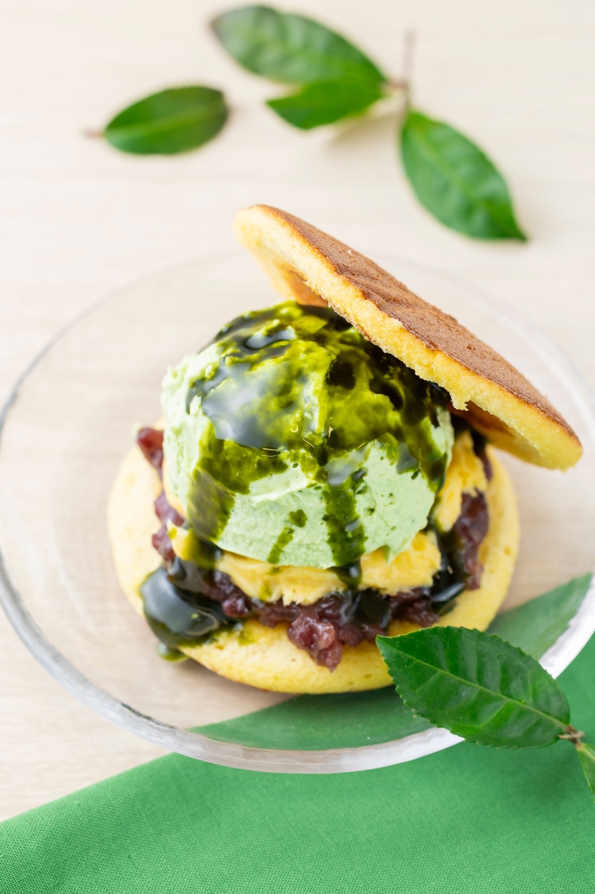 『冷やしばたーあんどら焼き葛練り抹茶』は、甘くふわふわの抹茶ホイップに、コク深い抹茶ソースのほろ苦さ、さらにつるんとした抹茶葛練りの味わいが重なり、ひと口ごとに変化を楽しめます。
