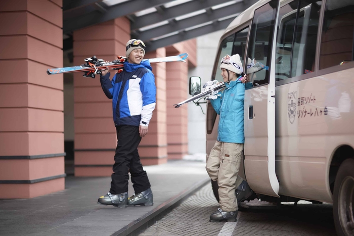 リゾナーレ八ヶ岳から車で15分程度の富士見パノラマリゾート、富士見高原スキー場まで、宿泊者専用の無料シャトルバスを運行します。新型コロナウイルス感染予防対策ガイドラインに沿って対策を施しているので、安心して乗車できます。