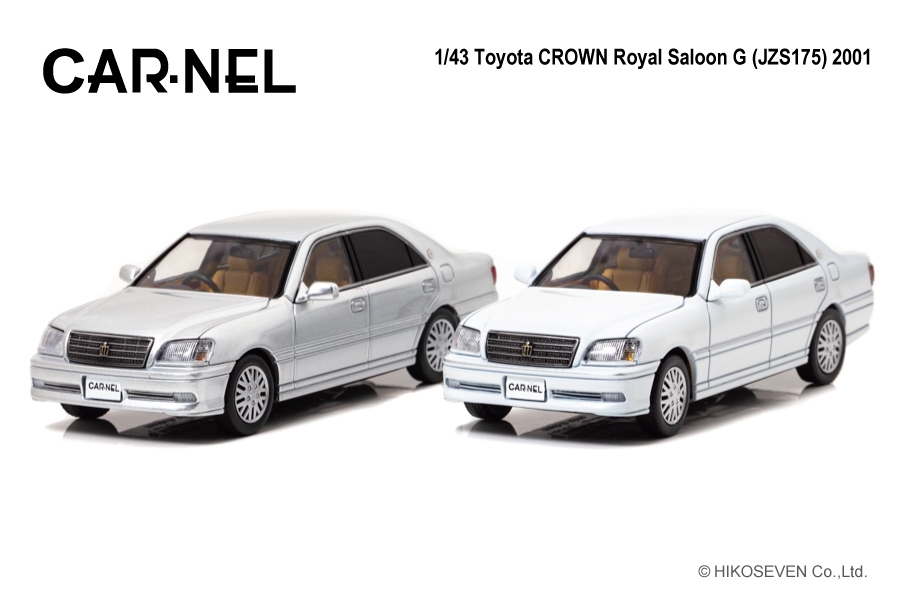 株式会社ヒコセブン(所在地:神奈川県横浜市、代表取締役:原島 行雄)は、オリジナルブランド「CARNEL」からダイキャスト製1/43スケール(約11cm)、トヨタ クラウン ロイヤルサルーンG (JZS175) 2001 White Pearl Crystal ShineとSilver Metallicの2色を2020年10月7日より直営店の「モデルギャラリーHIKO7」及び全国模型店にて予約開始致しました。