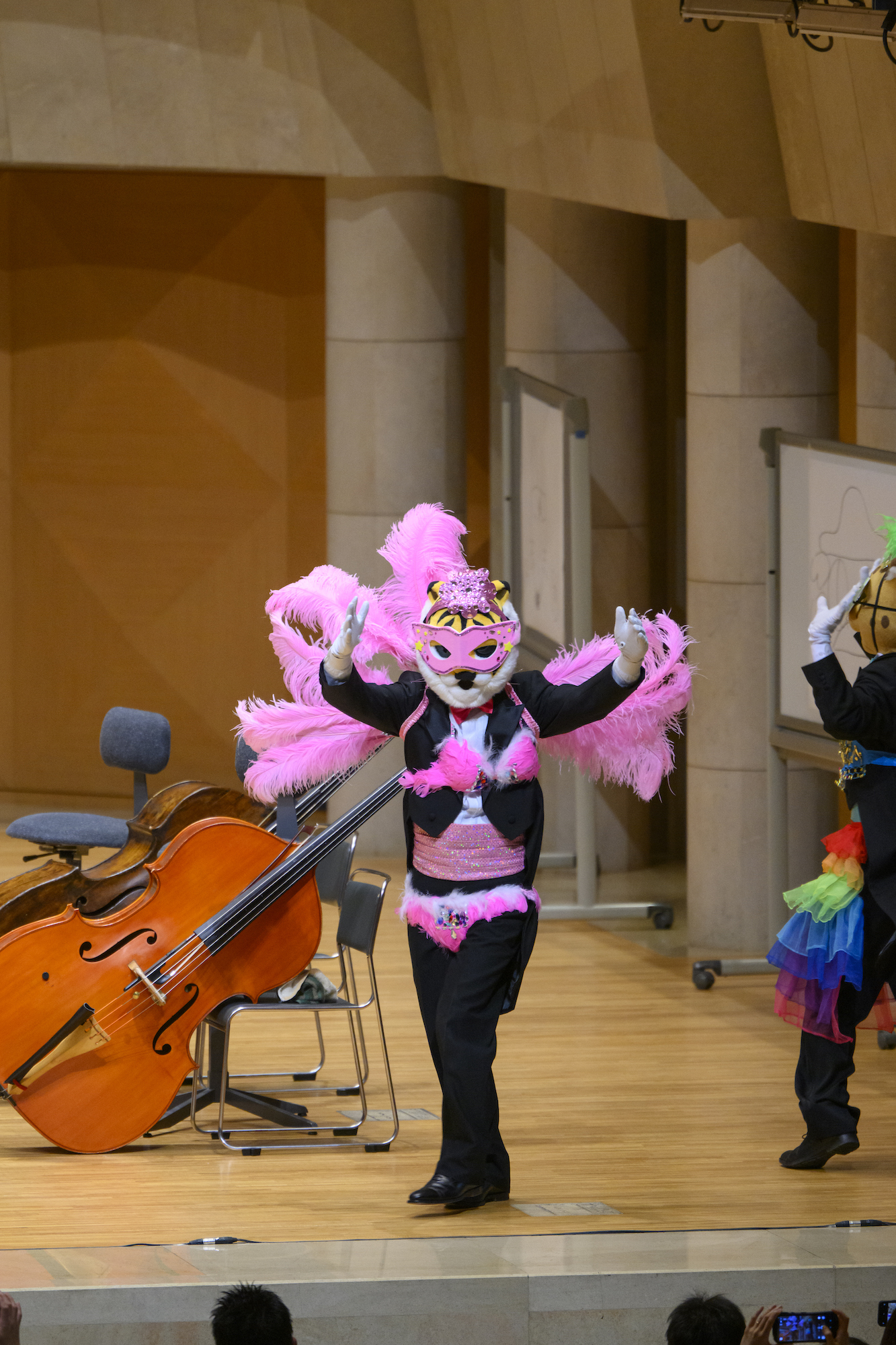 ズーラシアンフィルハーモニー管弦楽団に加えて、サックス四重奏のサキソフォックスとギターのオコジョも出演。オーケストラが更にノリノリでご機嫌なサウンドにパワーアップします。