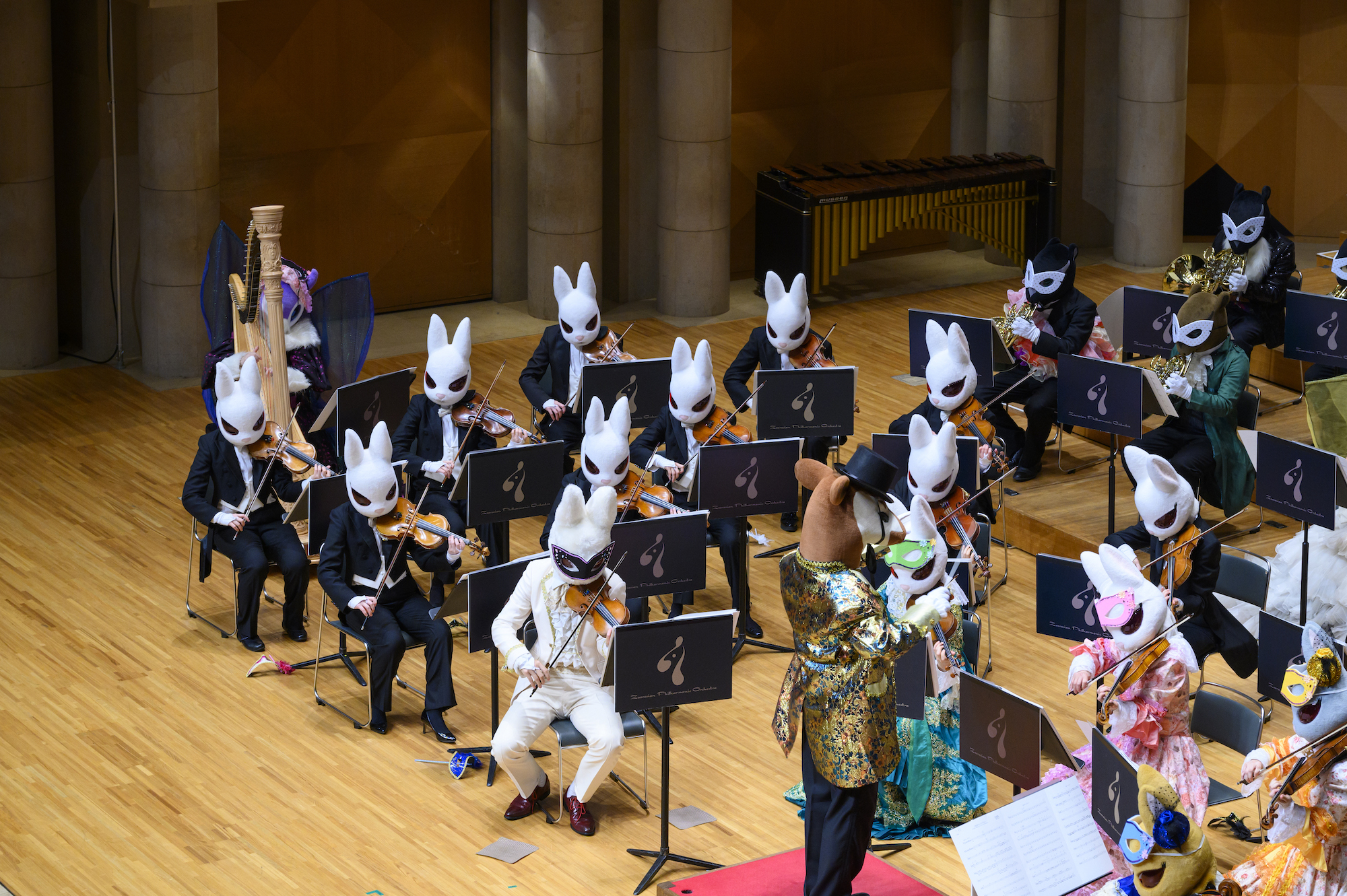 「弦うさぎ」(うさぎの弦楽四重奏)「サキソフォックス」(キツネのサックス四重奏)といった動物の仲間たちと行う、親子のためのコンサート「音楽の絵本」は、全国各地のホールで話題となり、海外公演も含め年間約150を数えます。2011年にはオーケストラ「ズーラシアンフィルハーモニー管弦楽団」を結成。これまでのコンサートから更に一歩踏み出し、慣れ親しんだ音楽をより交響的に紡ぐ「シンフォニック童謡」をテーマに展開。子どもたちのクラシック音楽への興味を一層高めています。