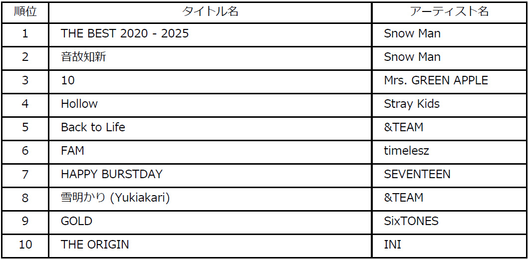 Billboard JAPAN Top Albums Sales 2025年年間チャート結果