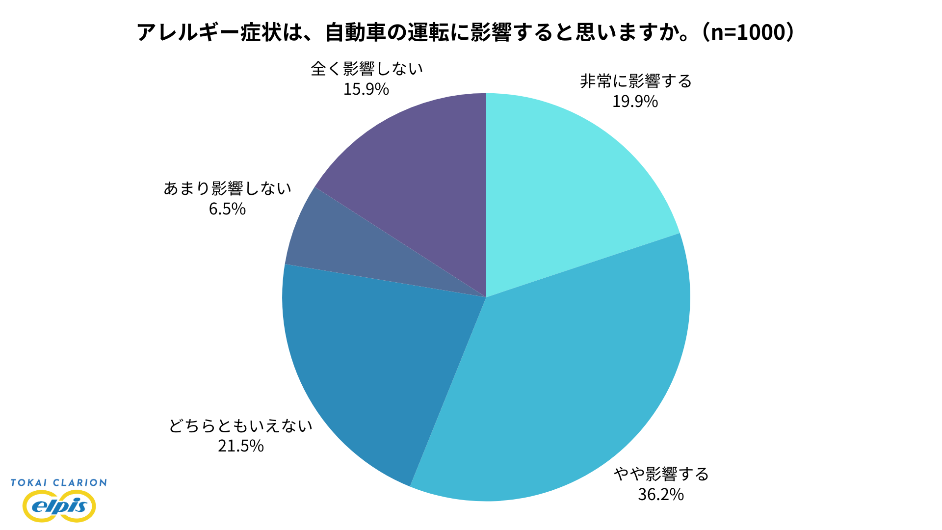 車載器専門商社の東海クラリオン株式会社(本社:愛知県名古屋市、代表取締役:安部 源太郎、以下 当社)は、花粉症などの季節性・通年性のアレルギー症状(※1)が自動車の運転に影響しているのかについて調査を行い、2026年1月15日(木)にその結果を発表いたします。本調査は、自動車を「ほぼ毎日運転する」または「1週間に数回運転する」と回答した、全国の男女18歳~65歳の計1,000名に実施いたしました。