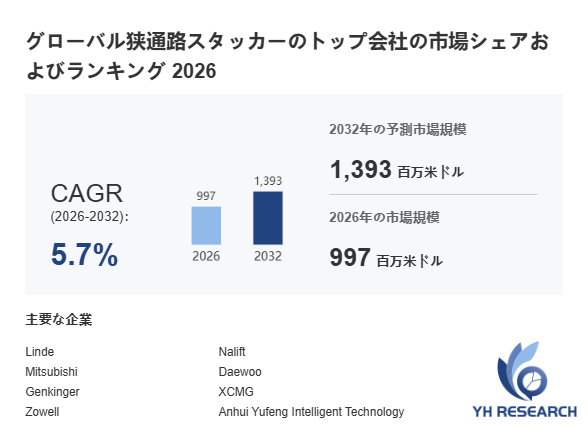 本記事は、YH Researchが発行したレポート「グローバル狭通路スタッカーのトップ会社の市場シェアおよびランキング 2026」 を紹介しています。