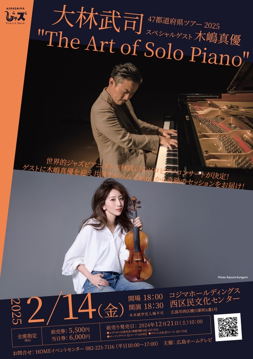 広島ホームテレビ(所在地:広島県広島市)は、2025年2月14日(金)に「HIROSHIMAじゃズ presents 大林武司 "The Art of Solo Piano" 47都道府県ツアー 2025 広島公演 スペシャルゲスト:木嶋真優」をコジマホールディングス 西区民文化センターで開催します。