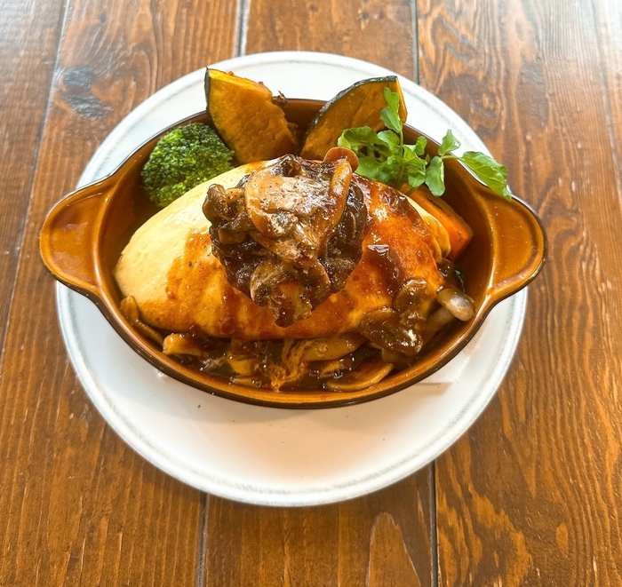 ◆トリュフ薫るきのこと秋野菜のデミグラスオムハンバーグ