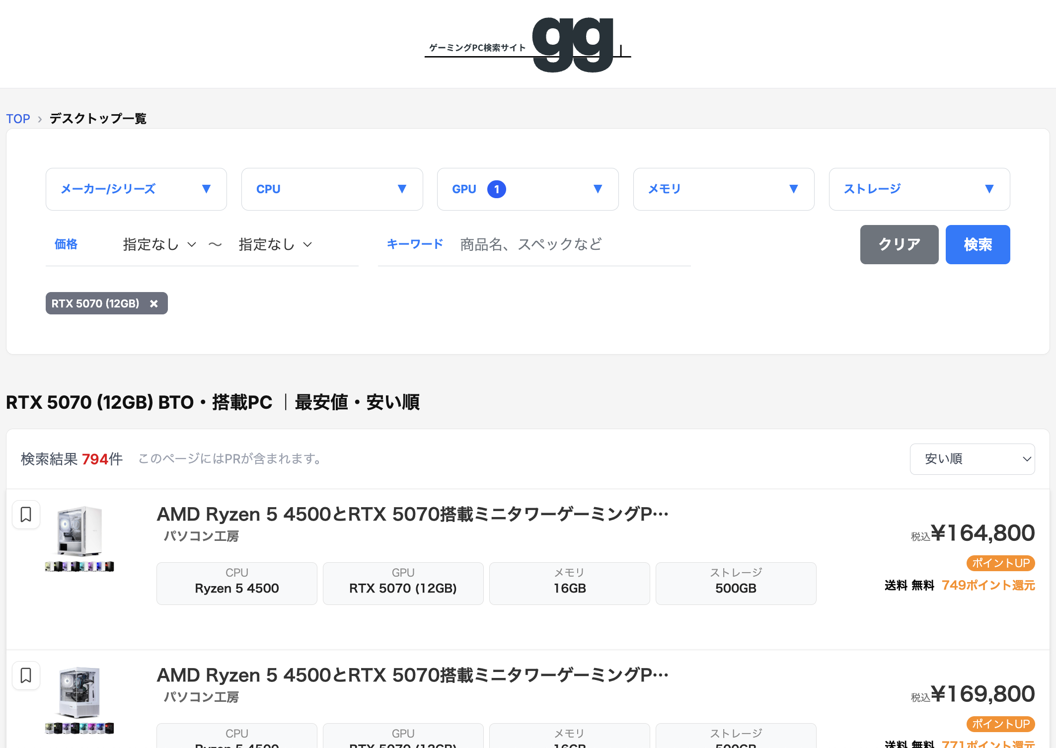 ゲーミングPC選びがもっと簡単に! 国内最大級の検索・比較サイト「gg(ジージー)」が誕生