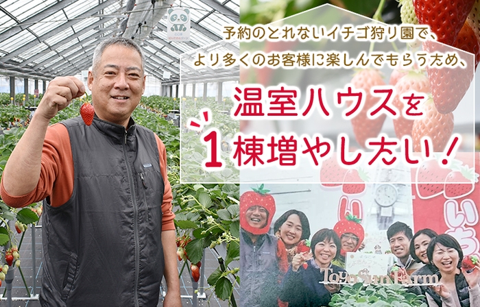 予約のとれないイチゴ狩り園で、より多くのお客様に楽しんでもらうため、温室ハウスを1棟増やすためのクラウドファンディング実施中です!