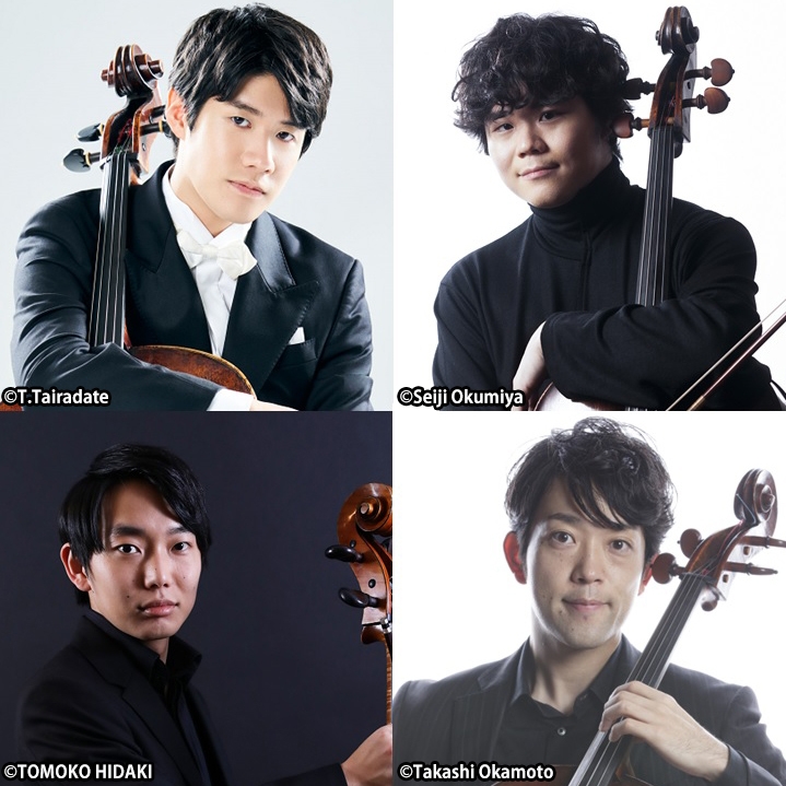 出演は、齋藤秀雄メモリアル基金賞チェロ部門第17回受賞者の伊藤悠貴、第21回受賞者の上野通明、第18回受賞者の佐藤晴真、第7回受賞者の横坂 源の4名。